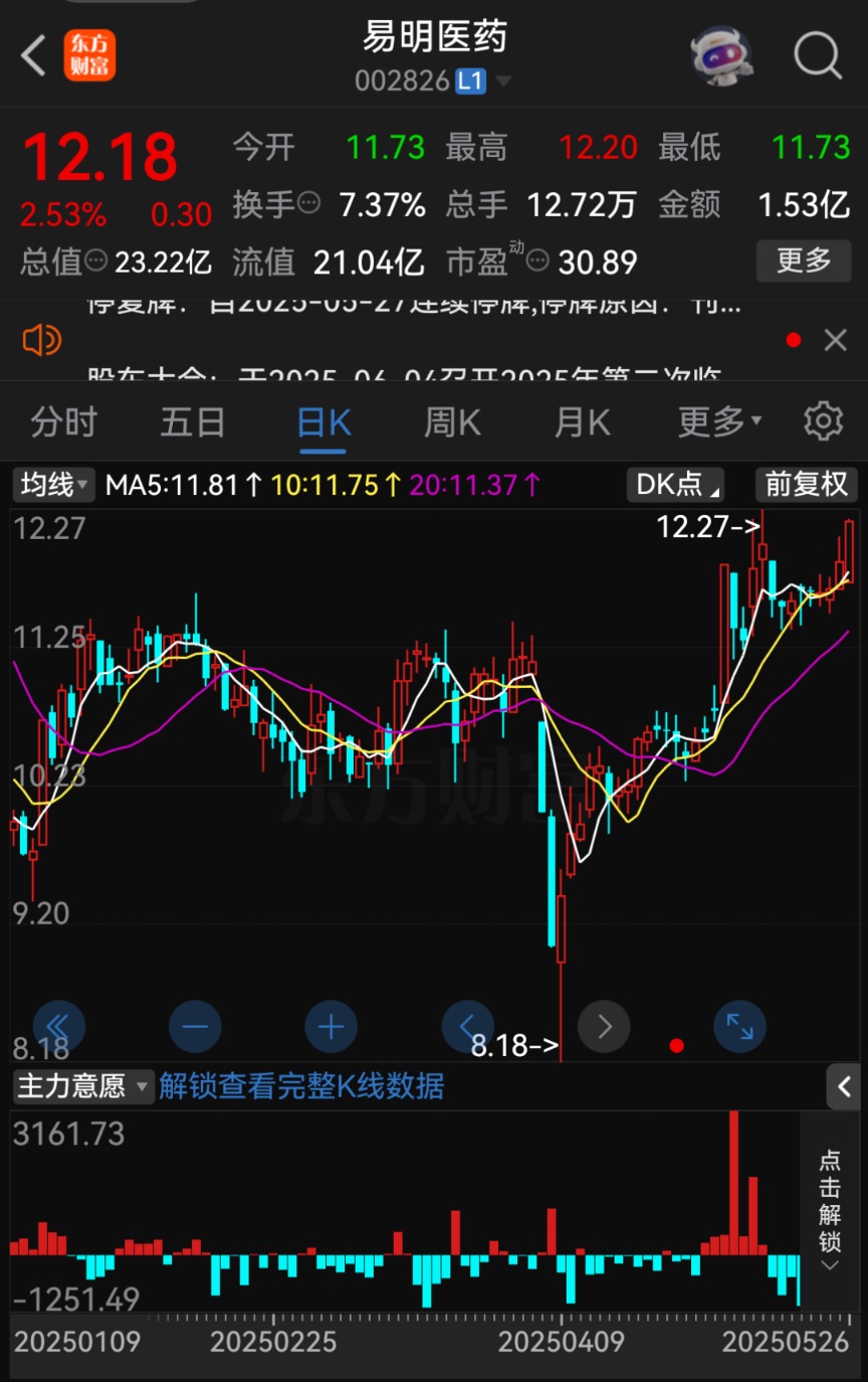截至5月26日收盘,易明医药股价报收于12.18元/股,涨幅达2.53%,总市值为23.22亿元。截至5月9日第一配资网,公司股东人数为2.01万户。