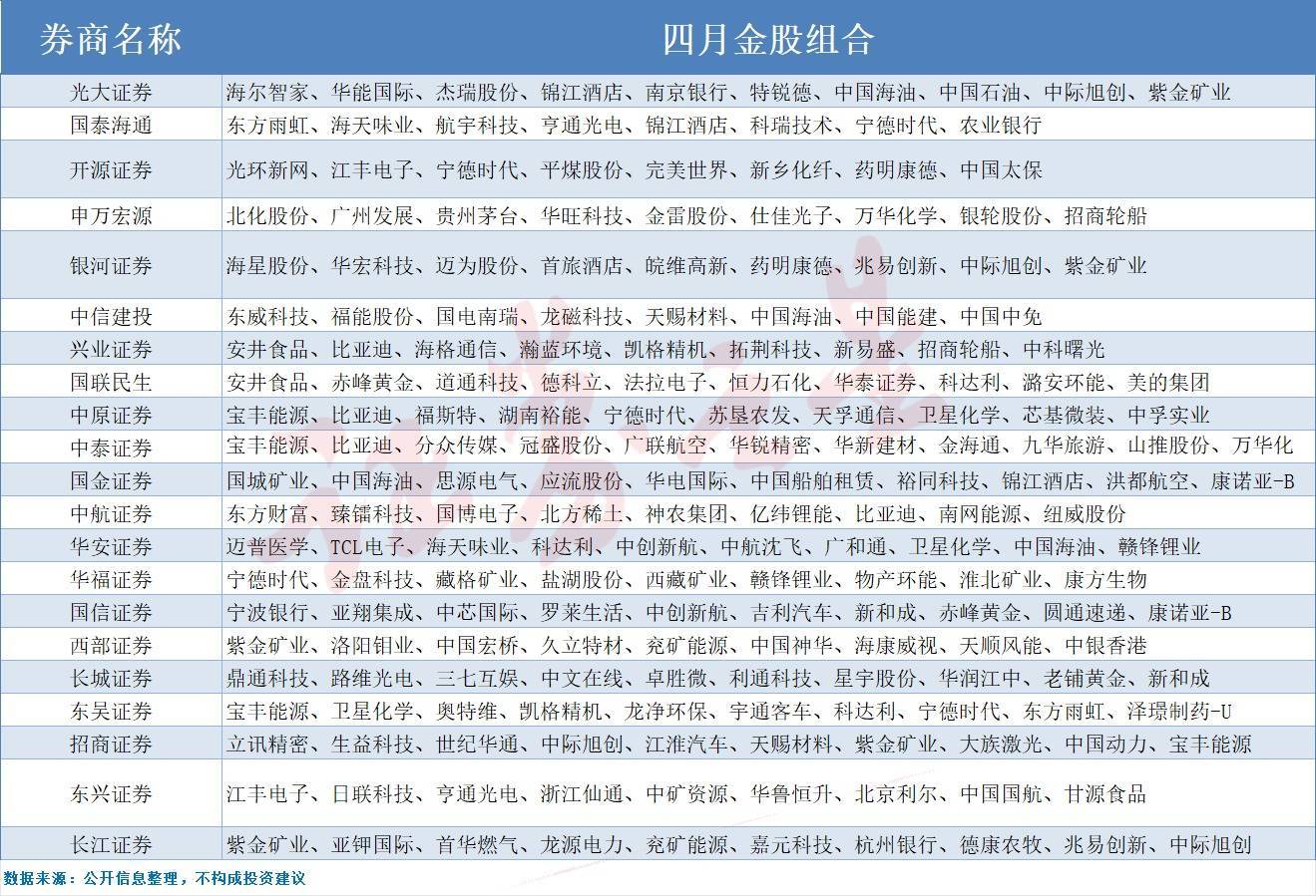 进入4月在线配资论坛,A股市场迎来一季报与年报的密集验证期,各大券商的新一期“金股”名单也陆续出炉。据证券之星小编不完全统计,截至目前已有光大证券、国泰海通、开源证券、申万宏源、银河证券、中信建投等券商发布了4月投资策略,并同步推出月度金股组合。